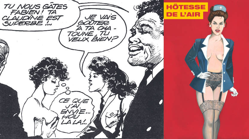 C’est d’ailleurs la figure de l’hôtesse de l’air qui m’a servi de trait d’union entre les deux lectures. Trait d’union qui a servi à établir une sorte de connivence entre des personnages issus d’univers assez différents où il y a d’abord celle, personnage de bande dessinée des années quatre-vingt-dix, qui annonce à la protagoniste de vouloir s’occuper de « sa chatoune », celle ensuite qui se dresse sur la couverture d’une autre bande dessinée, sur un beau fond rouge, à peine vêtue de la veste de son uniforme, et celle ensuite et finalement qui figure, abstraite encore, dans le sous-titre d’un des deux recueils que ChocolatCannelle a réussi à faire paraître chez Dominique Leroy.